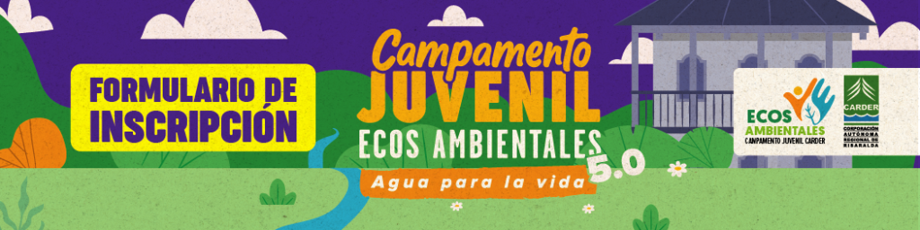 La CARDER invita al Quinto Campamento “Ecos Ambientales: “Agua para la vida”, un espacio de encuentro, experimentación y aprendizaje vivencial, de participación, reconocimiento y construcción colectiva con diferentes representantes de organizaciones y colectivos ambientales juveniles del departamento, en el que, durante tres días y dos noches, se dinamizan procesos de formación, lúdica y práctica para la valoración y protección del agua y los recursos naturales el territorio de Risaralda, a través de experiencias vivenciales, lúdicas y colaborativas, enfocadas al manejo responsable del agua que fortalezcan la apropiación social y la gobernanza del recurso.