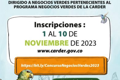 Con el propósito de fortalecer al sector de Negocios Verdes en el departamento, la Corporación Autónoma Regional de Risaralda, CARDER y la Sociedad de Mejoras de Pereira, en el marco del Convenio 708 del 2023; convocan a participar de la IV versión del “Concurso Negocios Verdes de Risaralda 2023” el cual busca motivar la construcción de la propuesta de valor de los Negocios Verdes de Risaralda; con el propósito de resaltar el impacto ambiental y social positivo, incrementando el empleo verde en la región y la conservación del capital natural en nuestro departamento. Dicho concurso, se enmarca en las acciones del Plan de Acción del Programa Regional de Negocios Verdes en Risaralda 2020 – 2024, en la Línea Estratégica N°8 “Desarrollo y fortalecimiento de la oferta”.