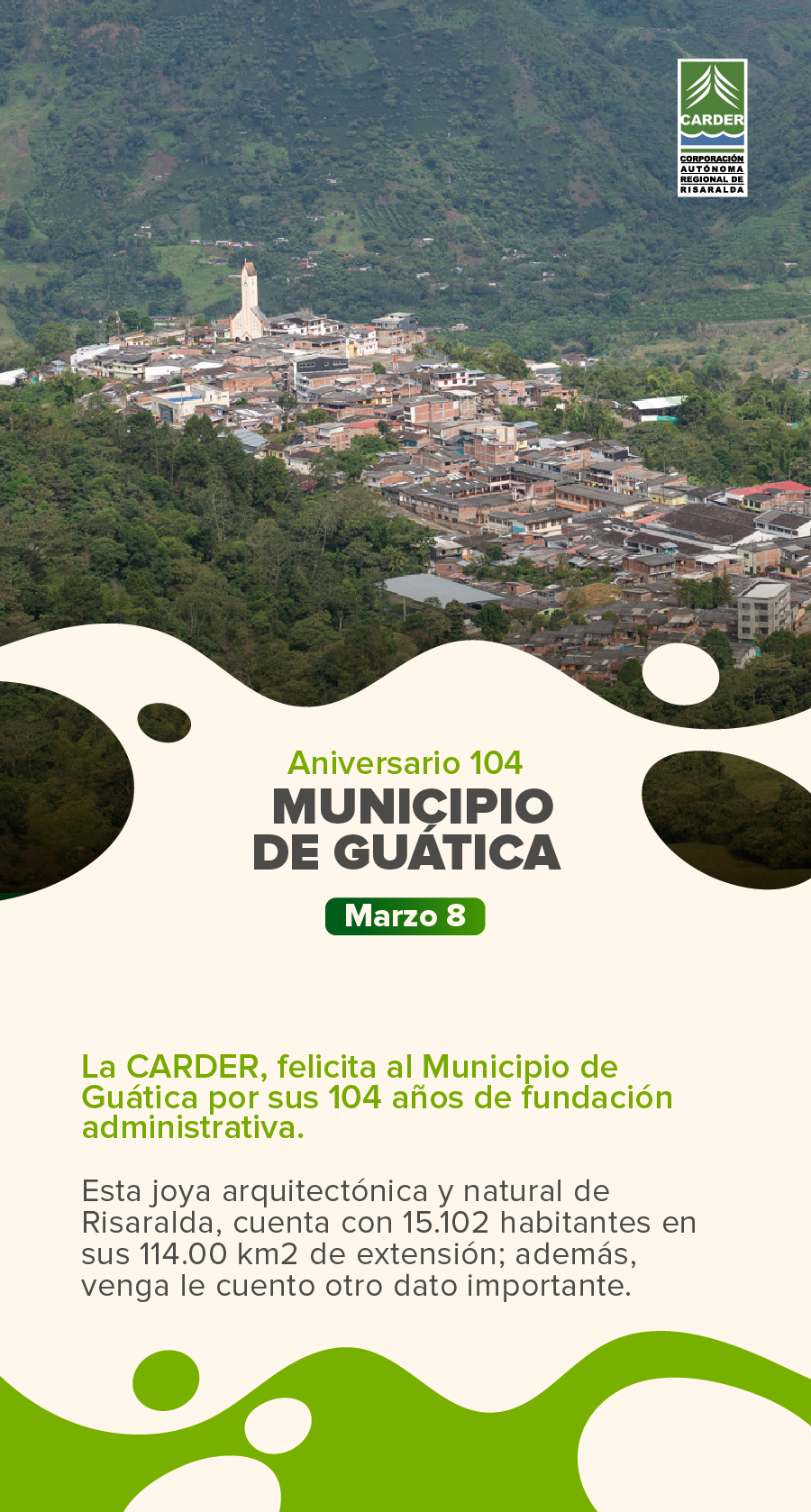 Buscar: Entradas recientes La CARDER recuerda uso exclusivo de canales oficiales para trámites y comunicaciones Los Negocios Verdes de la CARDER Brillan en BIOEXPO Nariño: “5 Mundos por Descubrir” Organizaciones comunitarias del SIDAP Risaralda presentan avances y acciones para la ejecución del POA en áreas de conservación La CARDER le da la bienvenida a la época decembrina y fomenta conciencia con el uso de la Pólvora La CARDER y autoridades de Dosquebradas frenan ocupación indebida y riesgos ambientales en predio rural del municipio Comentarios recientesDiagnóstico e identificación de problemas – CARDER en Arca AmbientalDiagnóstico e identificación de problemas – CARDER en CAMPAMENTO JUVENIL – ECOS AMBIENTALESControl social – CARDER en Informes de gestión del plan de acciónConsulta Ciudadana – CARDER en Programa de Transparencia y Ética Pública – PTEPPlaneación y presupuesto participativo – CARDER en Programa de Transparencia y Ética Pública – PTEP Fecha Mar 08 2025 ¡Caducado! Hora Todo el día Aniversario Municipio de Guática Compartir este evento + Añadir Google Calendar + exportación iCal / Outlook