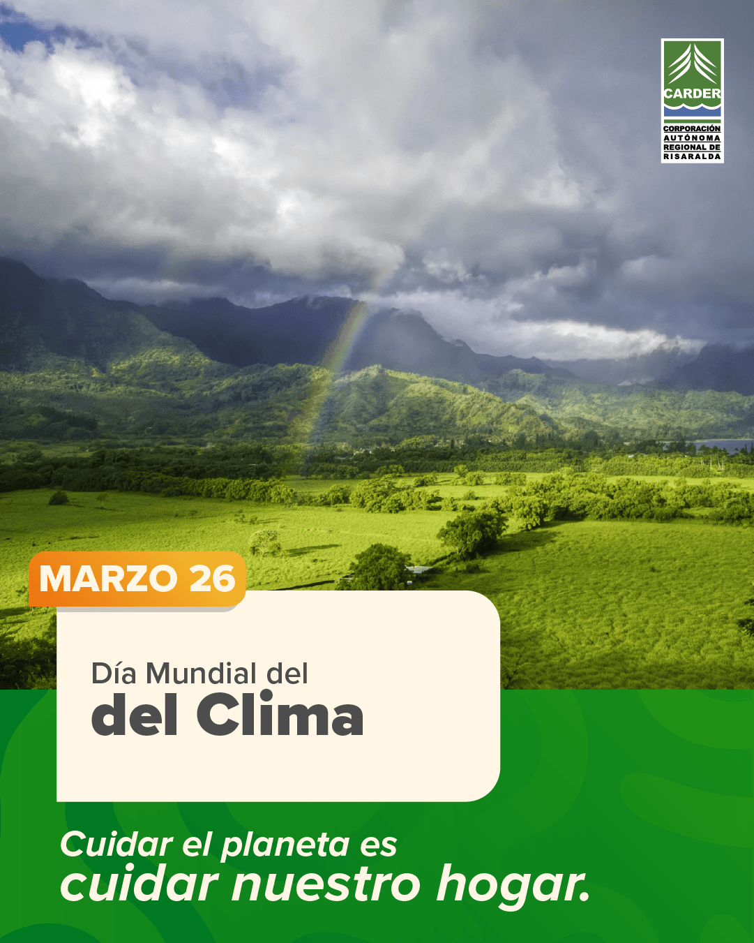 Buscar: Entradas recientes CARDER reporta 243 denuncias ambientales atendidas durante febrero CARDER y WCS avanzaron en Santa Cecilia en la ruta para la declaratoria del área protegida Alto Amurrupá CARDER hace llamado a alcaldías del Área Metropolitana para intervenir árboles que representan riesgo para la ciudadanía Alerta sobre fraccionamiento ilegal de suelo rural y áreas protegidas en Risaralda CARDER alerta sobre especies invasoras en Risaralda y refuerza acciones de control en 2026 Comentarios recientesDiagnóstico e identificación de problemas – CARDER en Arca AmbientalDiagnóstico e identificación de problemas – CARDER en CAMPAMENTO JUVENIL – ECOS AMBIENTALESControl social – CARDER en Informes de gestión del plan de acciónConsulta Ciudadana – CARDER en Programa de Transparencia y Ética Pública – PTEPPlaneación y presupuesto participativo – CARDER en Programa de Transparencia y Ética Pública – PTEP Fecha Mar 26 2026 Hora Todo el día Día Mundial del Clima Compartir este evento + Añadir Google Calendar + exportación iCal / Outlook