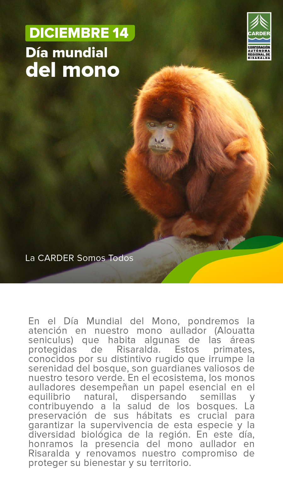 Buscar: Entradas recientes La CARDER recuerda uso exclusivo de canales oficiales para trámites y comunicaciones Los Negocios Verdes de la CARDER Brillan en BIOEXPO Nariño: “5 Mundos por Descubrir” Organizaciones comunitarias del SIDAP Risaralda presentan avances y acciones para la ejecución del POA en áreas de conservación La CARDER le da la bienvenida a la época decembrina y fomenta conciencia con el uso de la Pólvora La CARDER y autoridades de Dosquebradas frenan ocupación indebida y riesgos ambientales en predio rural del municipio Comentarios recientesDiagnóstico e identificación de problemas – CARDER en Arca AmbientalDiagnóstico e identificación de problemas – CARDER en CAMPAMENTO JUVENIL – ECOS AMBIENTALESControl social – CARDER en Informes de gestión del plan de acciónConsulta Ciudadana – CARDER en Programa de Transparencia y Ética Pública – PTEPPlaneación y presupuesto participativo – CARDER en Programa de Transparencia y Ética Pública – PTEP Fecha Dic 14 2023 ¡Caducado! Hora Todo el día Día mundial del mono Compartir este evento + Añadir Google Calendar + exportación iCal / Outlook