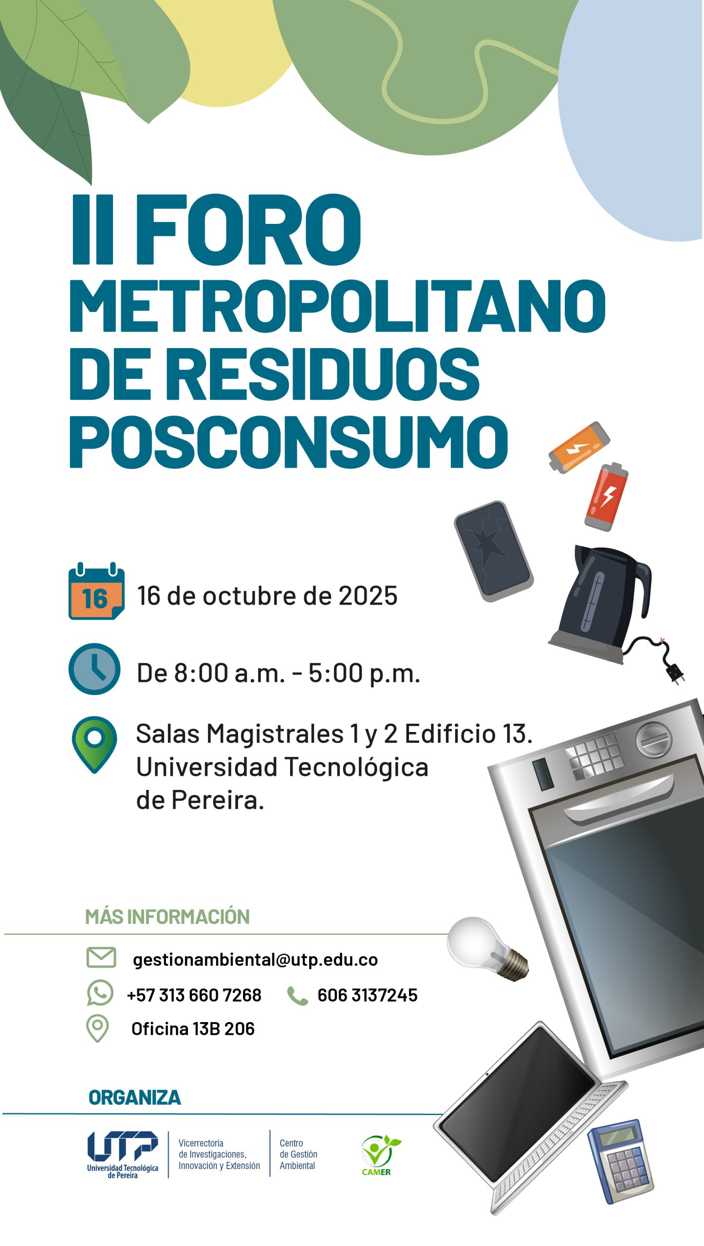 ¡ La CARDER y el Comité Ambiental Metropolitano de Residuos CAMER, invita al II Foro Metropolitano de Residuos Posconsumo y la Feria Departamental de Gestores de Residuos, con el propósito de fortalecer las capacidades locales y promover la actualización normativa.