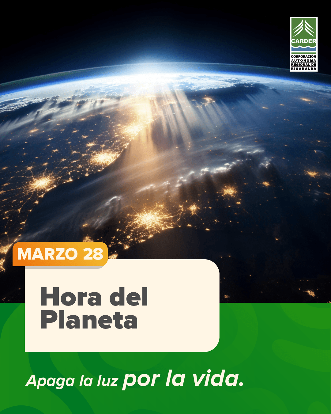 Buscar: Entradas recientes CARDER reporta 243 denuncias ambientales atendidas durante febrero CARDER y WCS avanzaron en Santa Cecilia en la ruta para la declaratoria del área protegida Alto Amurrupá CARDER hace llamado a alcaldías del Área Metropolitana para intervenir árboles que representan riesgo para la ciudadanía Alerta sobre fraccionamiento ilegal de suelo rural y áreas protegidas en Risaralda CARDER alerta sobre especies invasoras en Risaralda y refuerza acciones de control en 2026 Comentarios recientesDiagnóstico e identificación de problemas – CARDER en Arca AmbientalDiagnóstico e identificación de problemas – CARDER en CAMPAMENTO JUVENIL – ECOS AMBIENTALESControl social – CARDER en Informes de gestión del plan de acciónConsulta Ciudadana – CARDER en Programa de Transparencia y Ética Pública – PTEPPlaneación y presupuesto participativo – CARDER en Programa de Transparencia y Ética Pública – PTEP Fecha Mar 28 2026 Hora Todo el día La Hora del Planeta Compartir este evento + Añadir Google Calendar + exportación iCal / Outlook